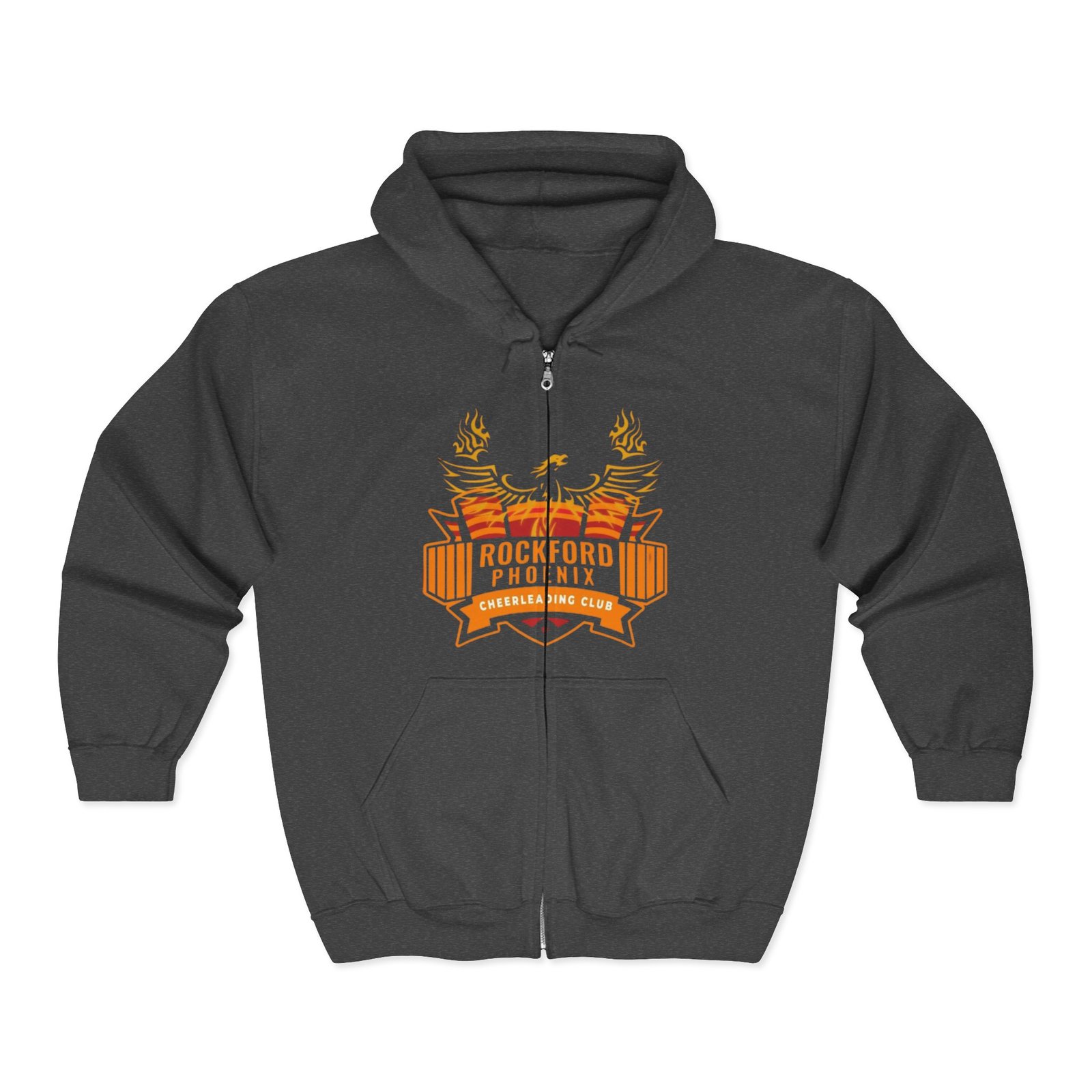 This classic zip-up hoodie combines sturdiness with team-spirit style. Midweight fabric and a roomy fit make it the kind of layer you reach for when the day calls for comfort and a little attitude. The bold phoenix-and-banner emblem on the chest reads like a rallying cry—warmth, grit, and pride stitched into your daily routine. Functional details like a full metal zipper, spacious front pockets, and an adjustable drawstring hood keep it practical for travel, late-night practices, or weekend hangouts. Wear it to show your colors, stay warm between seasons, or lean into that lived-in look after a long day.